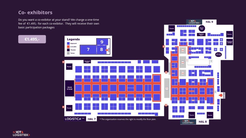 Do you want a co-exibitor at your stand? We charge a one-time fee of €1.495,- for each co-exibitor. They will receive their own basic participation packages