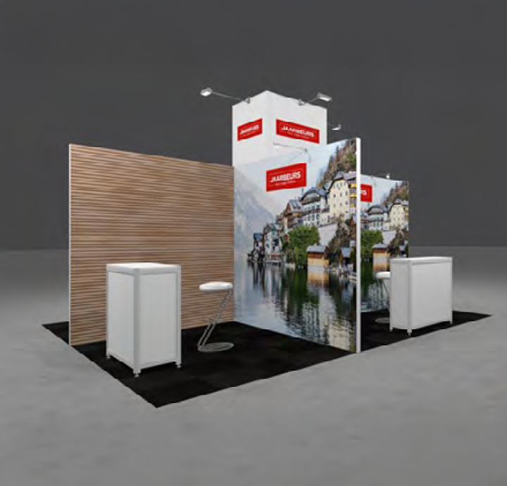 Custom stand construction is permitted for spaces starting at 20 m², provided it complies with the stand construction regulations.