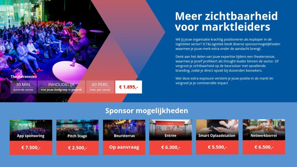 Wil jij jouw organisatie krachtig positioneren als koploper in de logistieke sector? ICT&Logistiek biedt diverse sponsormogelijkheden waarmee je jouw merk extra onder de aandacht brengt.