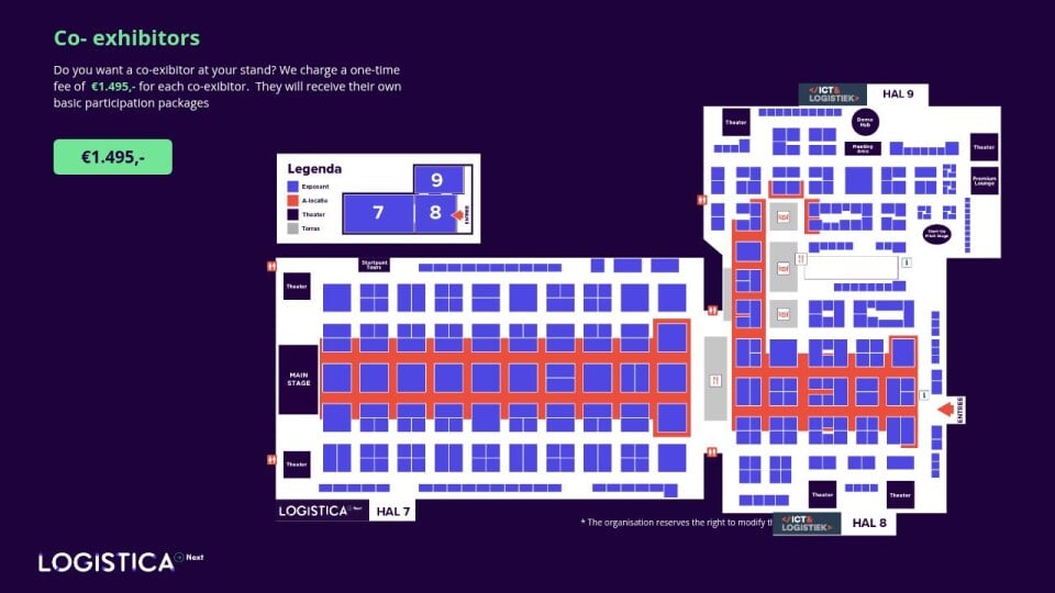 Do you want a co-exibitor at your stand? We charge a one-time fee of €1.495,- for each co-exibitor. They will receive their own basic participation packages