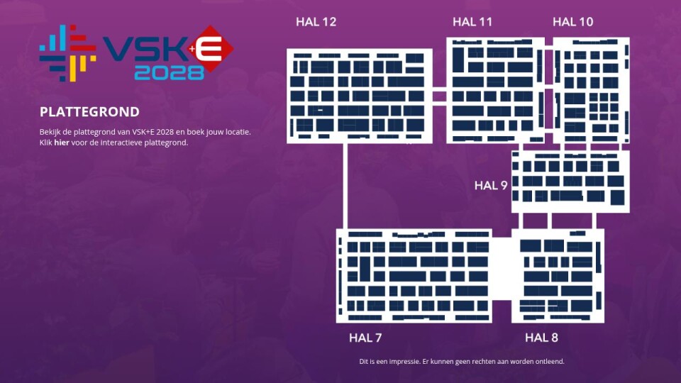 Bekijk de plattegrond van VSK+E 2028 en boek jouw locatie. Klik hier voor de interactieve plattegrond.